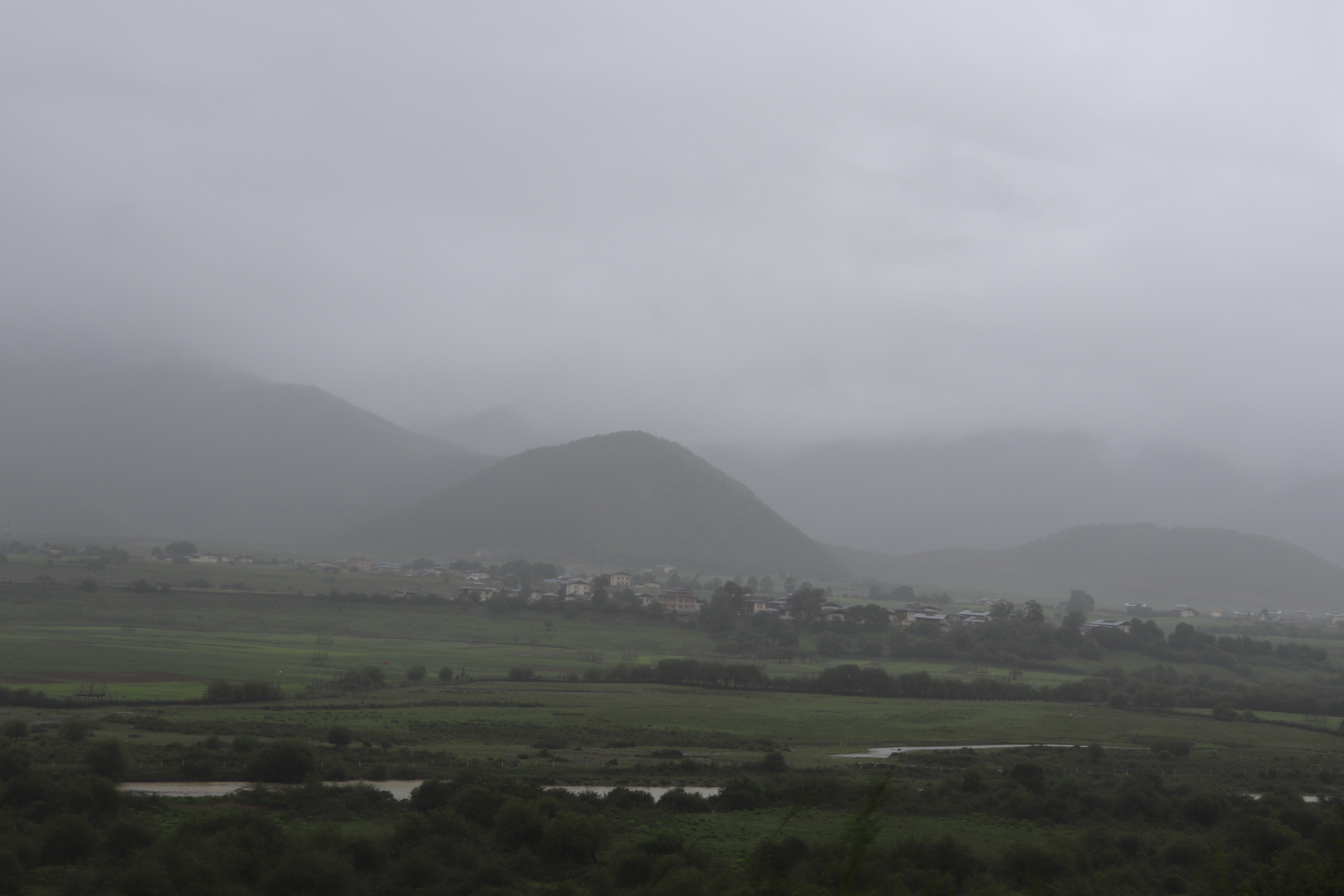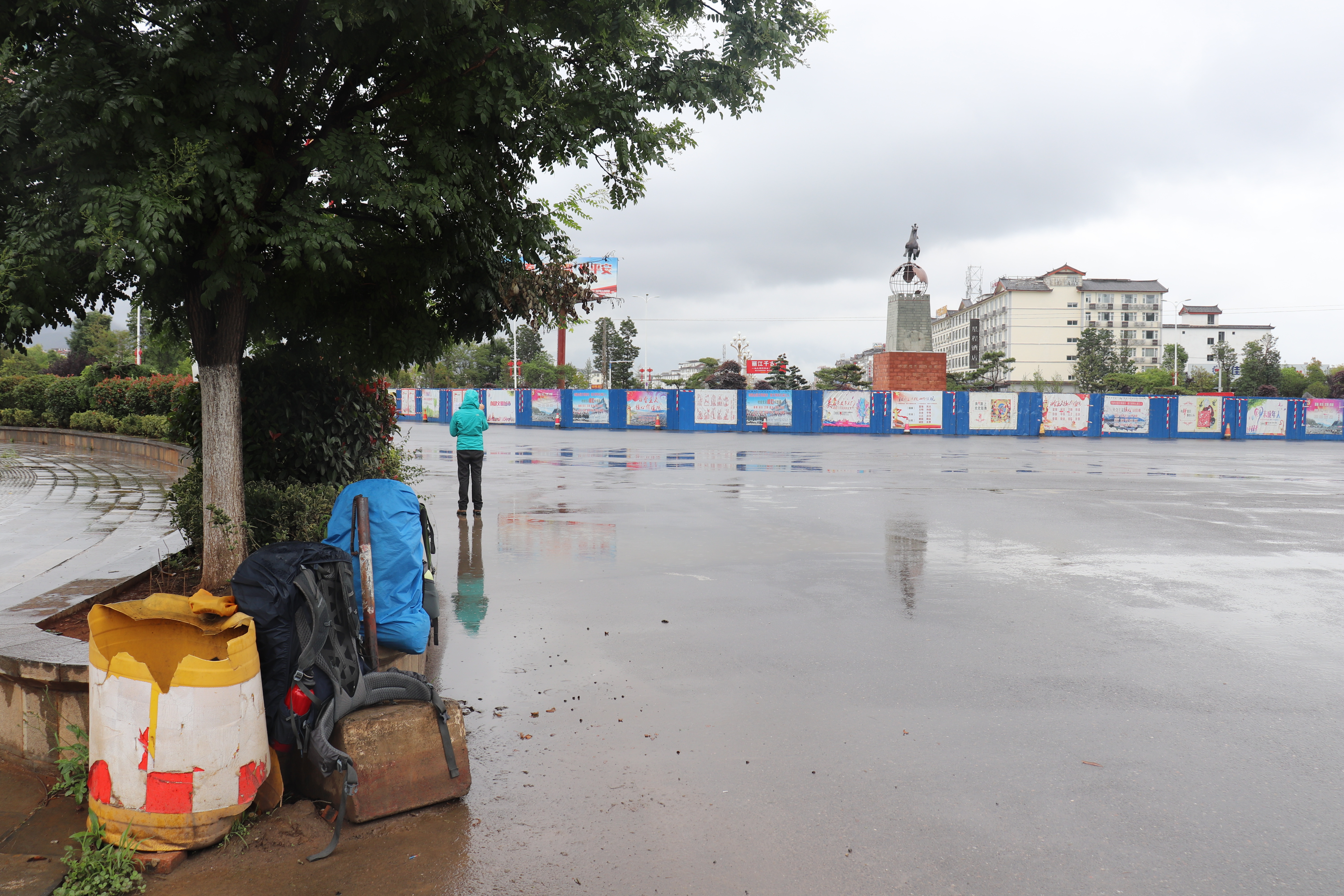 Zum zweiten Mal versuchten wir nun unser Glück beim Suchen einer Mitfahrgelegenheit von Lijiang nach Shangri-La. Auch an diesem Tag regnete es. Aufgrund der Grösse Lijiang‘s war es dieses Mal eine grössere Herausforderung uns an der richtigen Stelle hinzu stellen. Zuerst versuchten wir es in der Stadt selbst. Auch hier wurde eine Passantin auf uns aufmerksam. Sie las unser Schild und unseren Brief. Dann versuchte sie uns etwas zu erklären. Wir verstanden nichts. Sie blieb sehr hartnäckig und langsam hatten wir das Gefühl, dass sie mit uns schimpfte. Nach einer Weile versuchten wir sie zu ignorieren. Schliesslich ging sie ihren Weg weiter und wir blieben noch einen Moment dort stehen. Dann wurden wir aber auch unsicher, ob wir an diesem Ort erfolgreich würden. Wir fuhren mit dem Stadtbus an eine grössere Strasse.